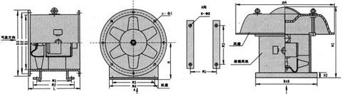 | 注:D1、D2D、3、H、M3、M4、n-Φ1、4-Φ2參加風(fēng)機(jī)外形尺寸表 |