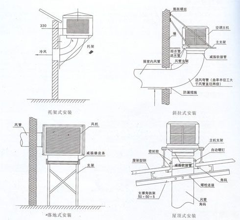 計算方法:場地體積×換氣次數(shù)÷機(jī)組風(fēng)量=使用機(jī)組數(shù)量 五、使用說明 1、本機(jī)適用于40-200m2房間降溫。風(fēng)機(jī)和水泵的電路宜集中控制,控制開關(guān)應(yīng)裝在室內(nèi)。冷風(fēng)機(jī)使用前,應(yīng)確保濕簾和水池中無雜物,每年清醒1-2次;冬季不用時,將池內(nèi)水放凈,用塑料布把箱體包扎好,以免雜物進(jìn)入機(jī)內(nèi)。 2、加入池中水應(yīng)為清潔水,以保持管路暢通和濕簾的高效率。如發(fā)現(xiàn)濕簾供水不足和不均時,要檢查池中是否缺水(池中浮球閥能自動補(bǔ)水和斷水),水泵是否運轉(zhuǎn)以及供水管路和水泵入口,尤其是噴水管璐上的小孔有否堵塞,檢查噴水管路是否位于濕簾的正中。 六、安裝示意及說明 壁式安裝技術(shù)要求: 1、風(fēng)機(jī)主機(jī)支架焊接和牢固; 2、風(fēng)機(jī)主機(jī)安裝必須水平; 3、所有外墻風(fēng)管都要作好防水處理; 4、40×40×4角鐵架與墻或窗采用螺栓連接,風(fēng)管與角鐵架間 填橡膠圈。且所有墻上縫隙均用玻璃膠或水泥砂漿密封。 5、減振軟接管必須保證長度為200-300mm。 屋頂式安裝技術(shù)要求: 1、屋架要有足夠的強(qiáng)度承受風(fēng)機(jī)和安裝維修人緣的重量; 2、屋頂開口尺寸與風(fēng)管尺寸的單邊間隙應(yīng)不大于10mm(如圖) 3、風(fēng)機(jī)主機(jī)安裝必須水平; 4、所有外墻風(fēng)管都要作好防水防漏處理; 5、減振軟接管必須保證長度為200-300mm。 七、濕簾冷風(fēng)機(jī)原理示意圖 ![]() 新時代的選擇:濕簾+風(fēng)機(jī)縱向通風(fēng)降溫系統(tǒng)。是當(dāng)今世界最先進(jìn)、最經(jīng)濟(jì)。最環(huán)保的降溫系統(tǒng)。工作原理是:在波紋狀的濕膜表面有層薄薄的水膜,當(dāng)室外干熱新鮮空氣被對面風(fēng)機(jī)抽吸穿過濕膜時,空氣中的熱量被濕膜上的水吸收并 水蒸發(fā)進(jìn)入室內(nèi),形成涼爽濕潤的空氣,使人產(chǎn)生清新的感覺。在炎熱的夏天,該系統(tǒng)可將室內(nèi)溫度降低5-10度,而耗 電量只是傳統(tǒng)的空調(diào)的十分之一,完全符合高效節(jié)能的經(jīng)濟(jì)原則其通風(fēng)效果是現(xiàn)代空調(diào)無法比擬的,能保持工廠內(nèi)清新, 流通的空氣,能有效控制空氣中的任何不良成分。 |